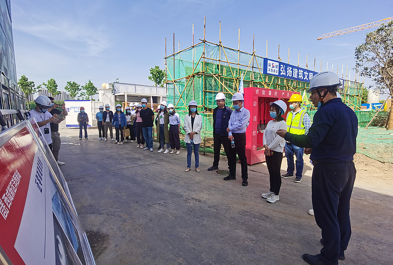在絲路歡樂世界,講解員從文化共生、融合創(chuàng)新角度闡釋了項(xiàng)目的包容力與生命力,帶領(lǐng)大家深度領(lǐng)略絲路文化基因,感受項(xiàng)目發(fā)展動能。在灃河灃景路泵站管理用房項(xiàng)目,大家詳細(xì)了解了新型木紋清水混凝土工藝的應(yīng)用成果,以及項(xiàng)目在打造近零碳建筑過程中的系列創(chuàng)新舉措。在實(shí)驗(yàn)學(xué)校,全體人員參觀了灃西新城“最美圖書館”,通過智慧借閱系統(tǒng)選擇感興趣的圖書進(jìn)行閱讀,共同感受濃厚的書香氛圍。