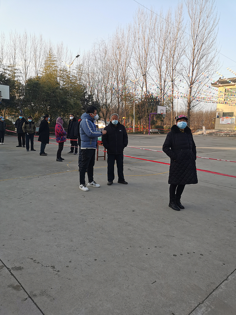 財務部黨支部疫情防控黨員“突擊隊”由8名黨員、2名積極分子組成,并吸納部門優秀團員、群眾加入。所有人員由支部班子成員帶隊,分成三組分別下沉至新旺村、河頭村、曹寨村三個核酸檢測點位開展防疫執勤工作,協助醫護人員進行掃碼、測溫、信息登記,維持核酸采樣現場秩序。