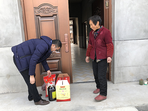 在新城扶貧辦及大王鎮(zhèn)政府的安排部署下,各幫扶干部為貧困戶送去了米、油、禮品菜等慰問品,送去了節(jié)日祝福和真誠(chéng)關(guān)愛。大王鎮(zhèn)王守村郭振芳老人年過八旬,為本次精準(zhǔn)扶貧危房改造戶,其子殘疾,無(wú)勞動(dòng)能力,全家由兒媳一人支撐,生活困難。幫扶干部姬國(guó)強(qiáng)同志自結(jié)對(duì)幫扶以來(lái),積極跟進(jìn)危房改造過程,定期入戶走訪,與老人聊天,關(guān)心身體狀況與日常生活,幫扶工作得到了全家人的認(rèn)可與稱贊。