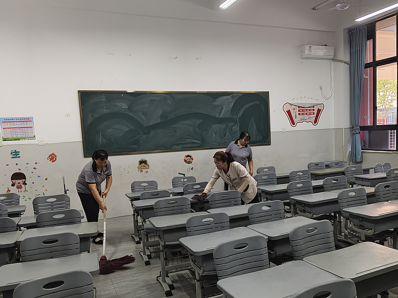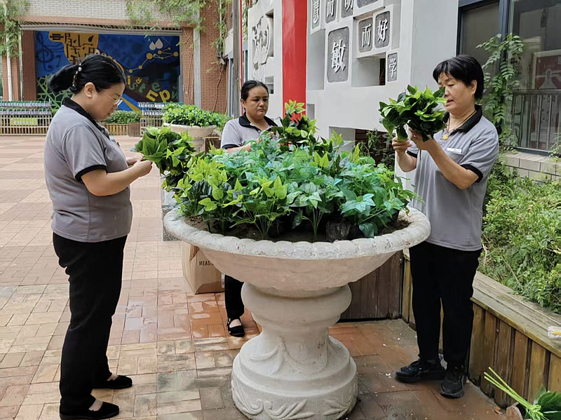 從教學(xué)樓到宿舍樓,從主干道到操場(chǎng),灃西服務(wù)嚴(yán)格執(zhí)行標(biāo)準(zhǔn)化作業(yè)流程,開展全覆蓋深度清潔,并對(duì)衛(wèi)生間、教室等重點(diǎn)區(qū)域進(jìn)行徹底消殺,確保校園環(huán)境健康安全。同時(shí)積極配合校方開展綠植養(yǎng)護(hù)與景觀煥新工作,以盎然綠意和清新面貌迎接師生歸來(lái)。