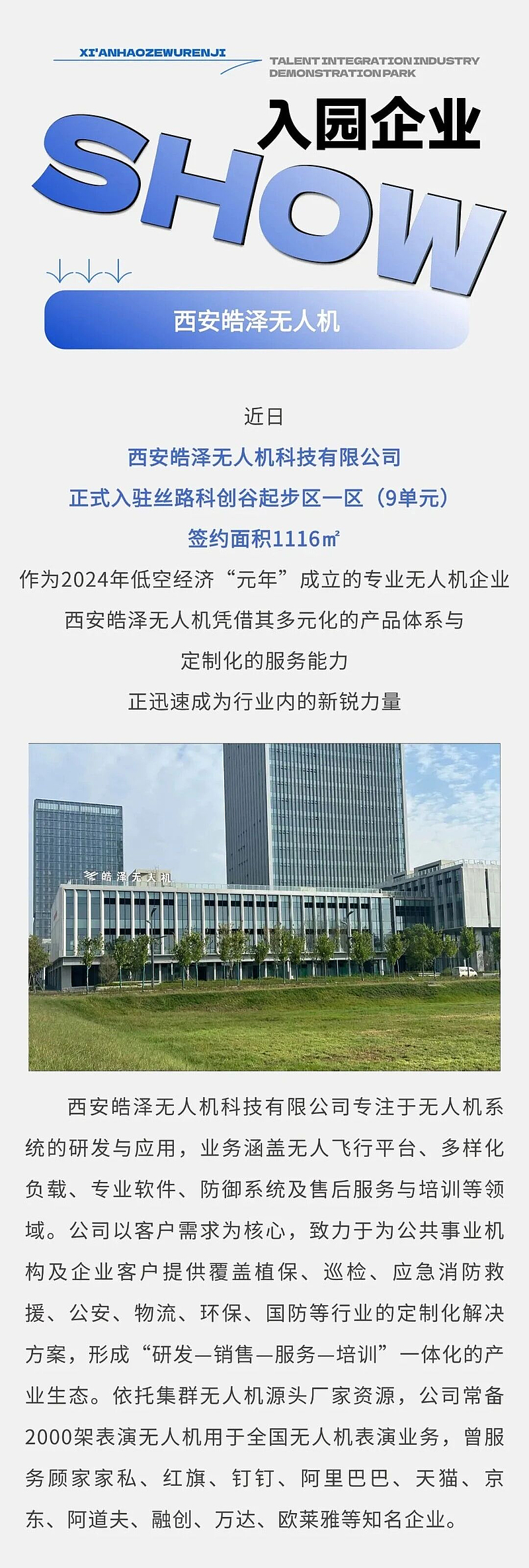 入園企業(yè)SHOW——西安皓澤無(wú)人機(jī)