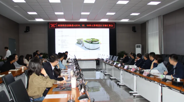 會上,規劃設計單位分別對西部科技創新港A區04、05、09單元景觀設計方案進行匯報,與會人員從風格定位、功能區劃分、景觀結構、種植設計、亮化效果、空間布局等方面深入交換意見,充分融合海綿城市建設、綠色建筑、能源、市政、道路等多方面因素,就景觀設計、業態布局、人流導向、商業氛圍等方面進行開放性討論,并提出針對性修改意見。
